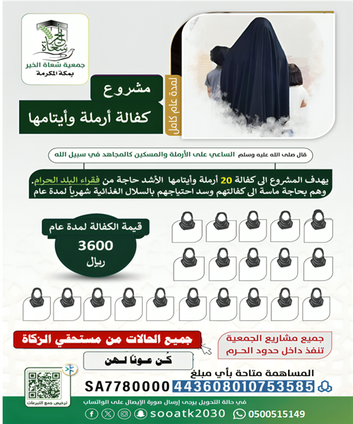 كفالة 20 أرملة وأيتامها بسلة غذائية تغطي نفقات احتياجهم لمدة عام